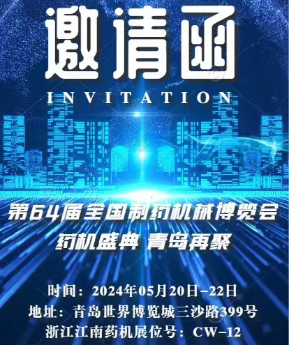 全国制药机械博览会暨中国国际制药机械博览会是业界公认的专业化、国际化、规模大、展品全、观众多,而且集贸易、研讨于一体的制药装备行业交流平台,值此第64届(2024年春季)全国制药机械博览会召开之际,我们诚邀新老朋友莅临参观指导!